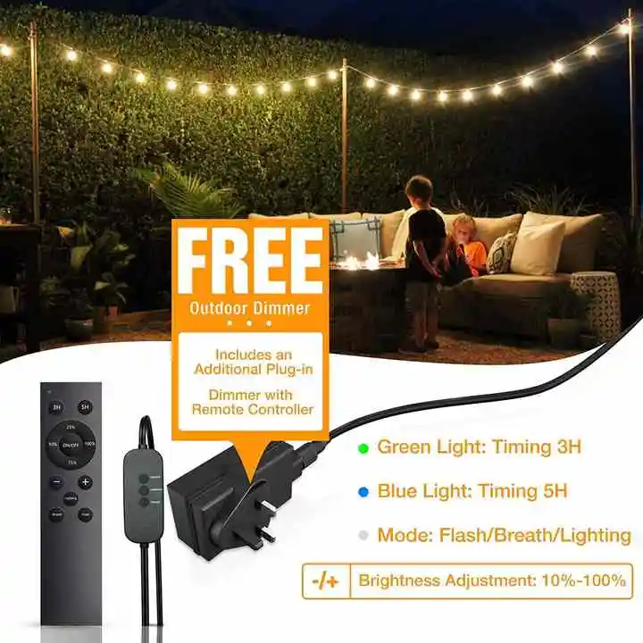 Vertak G40 Led Light String 60FT Remote Control Solar String Led Light with Shatterproof Bulbs